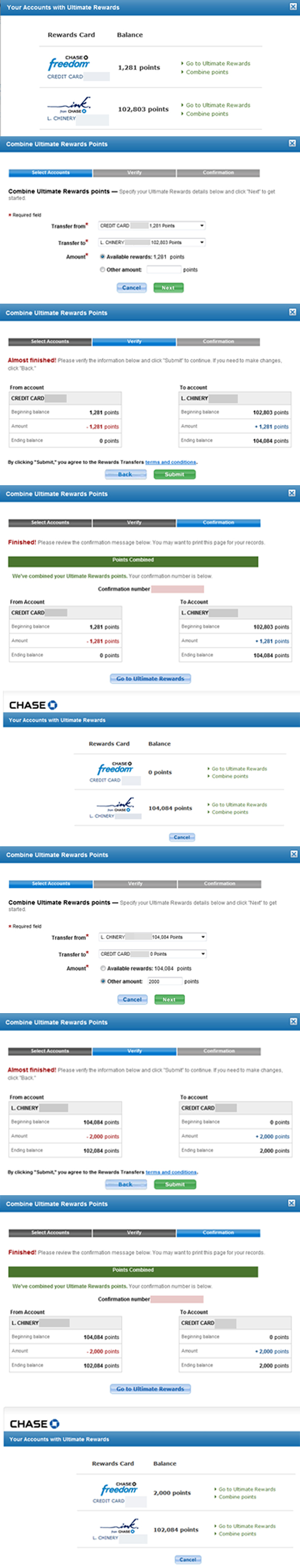 In the screen captures below, you can see how I moved points from my Chase Freedom to my Chase Ink Bold and back to Chase Freedom – instantly.