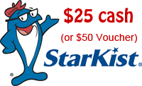 You can get $25 cash or $50 in StarKist tuna products if you are a U.S. resident who purchased any of the following StarKist products between Feb. 19, 2009 and Oct. https://www.chipsmoneytips.com/2015/09/25-50-from-starkist/ https://www.chipsmoneytips.com/2015/09/25-50-from-starkist/ https://www.chipsmoneytips.com/2015/09/25-50-from-starkist/31, 2014: 5 oz. Chunk Light in Water, Chunk Light in Oil, Solid White in Water, or Solid White in Oil.